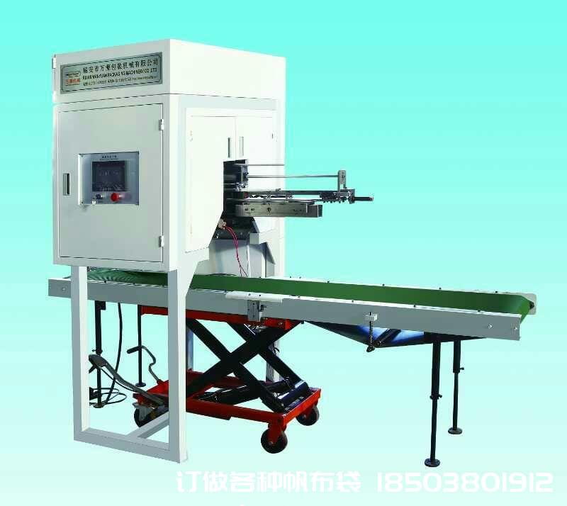 该机适用原材料无纺布 适用于专业无纺布面粉袋封口。该机有几大优点。焊接美观。牢固。防止漏面。代替传统工艺。可节约缝纫线。合格证。喷码机。可省一系列耗才。本机采用PLC控制器。触摸显示屏。步进电机拉料定长、大功率超声波焊接。自动计数即可设定计数报警等工控装置。准确 、'平稳.、高效率、是目前国内外最先进的封口机、操作简单。安装方便。等几大尤点。