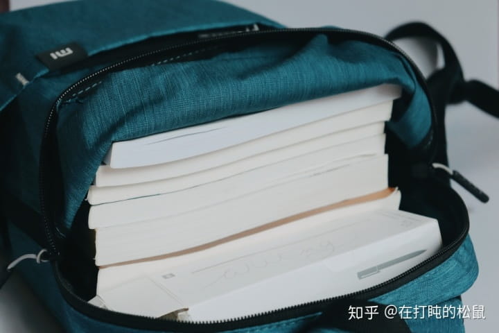 我买的两款都是10L的,170g的重量,书包里装几本书,带个充电宝,背上去非常合适。其实10升的容量还是非常能塞东西的,我往里面装了8本书,是我这学期的专业书,其实还可以在多装点,前面放上文具,妥妥的,毫无压力。