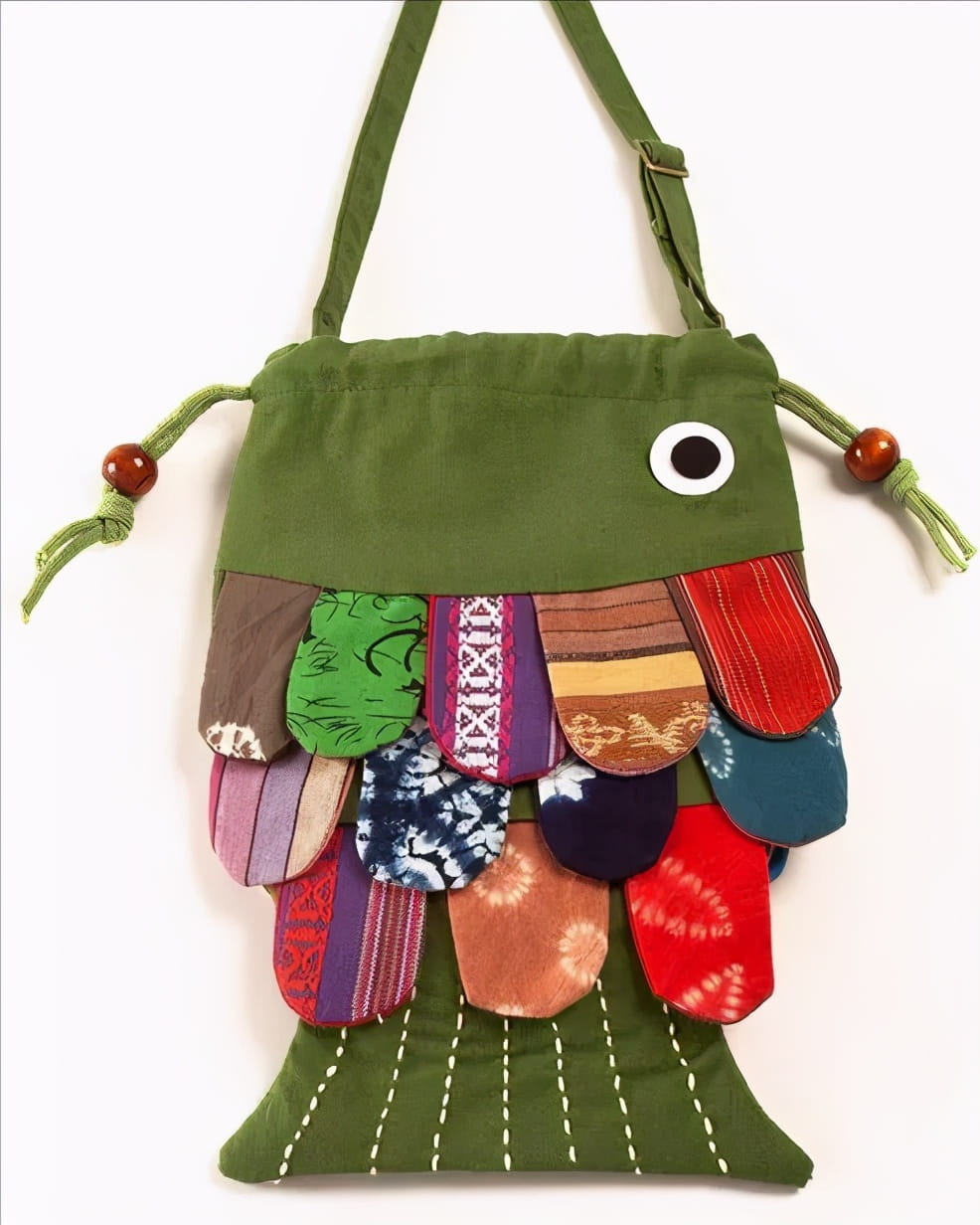 束口袋大家通常认为就是一个袋子做成方形的,穿上一根绳拉紧就可以,其实这样也是最基础的,今天随小编同学我们来学习一个小鱼束口袋的做法,不但效果好外观功能也是非常吸引眼球的,先来看看成品,很多网友表示看完都称不但实用,外观还好看!