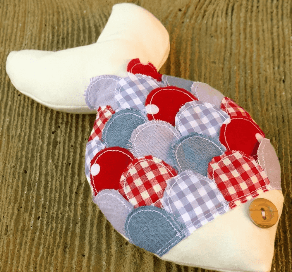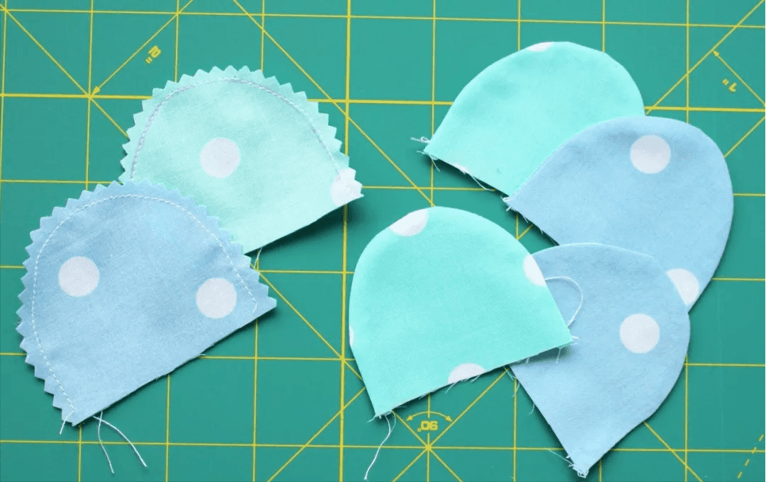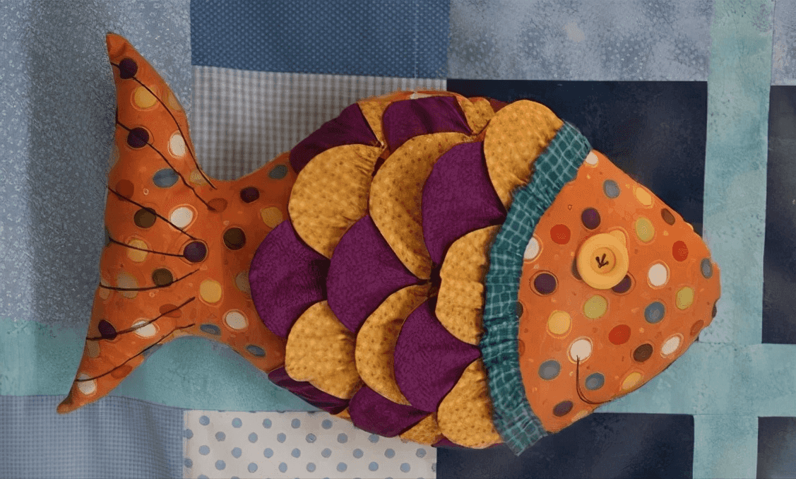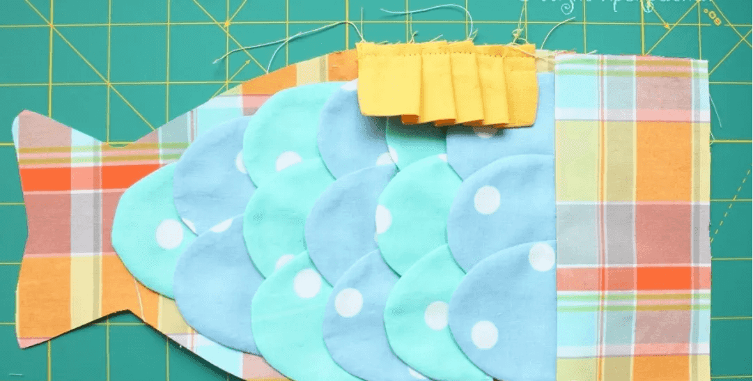 再剪4块布分开相叠,做鱼嘴,各自缝在鱼头上。