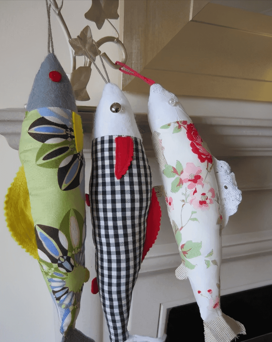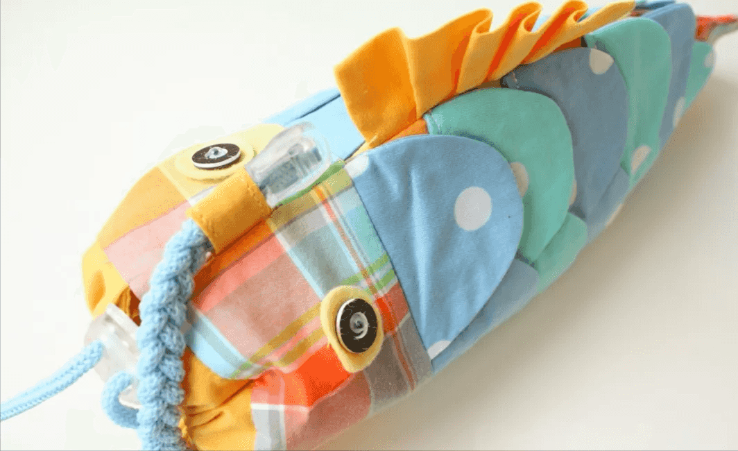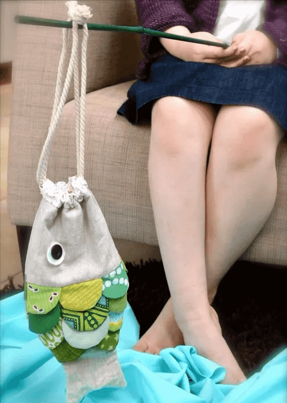 然后把里袋和鱼身翻回正面,把里袋套进去鱼身,鱼嘴处穿上绳子就完成了。