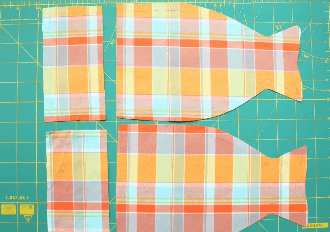 准备小鱼的鱼身图纸,放在布上剪下来。