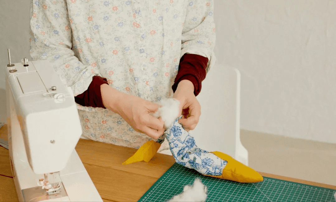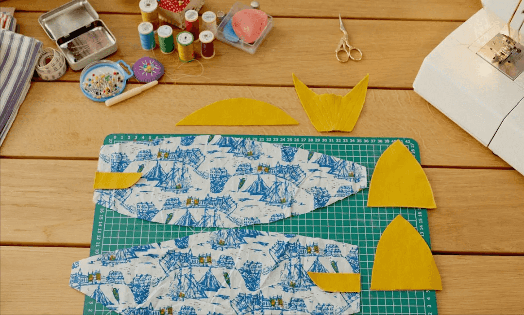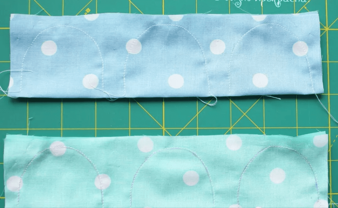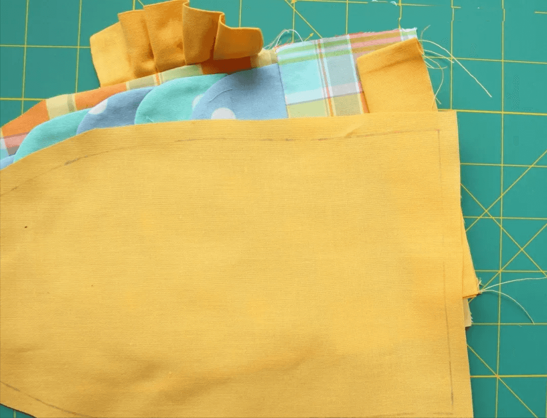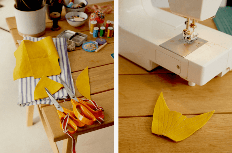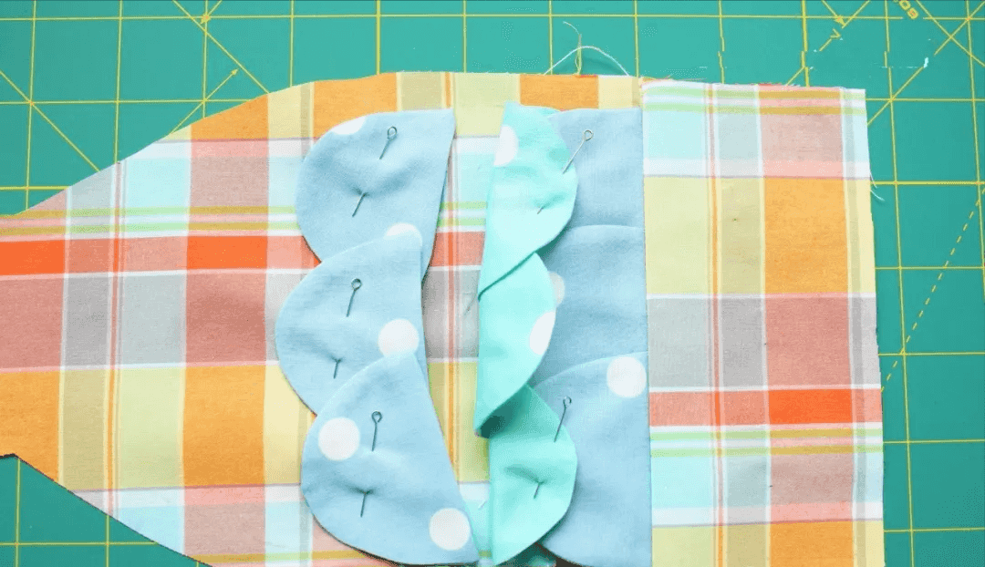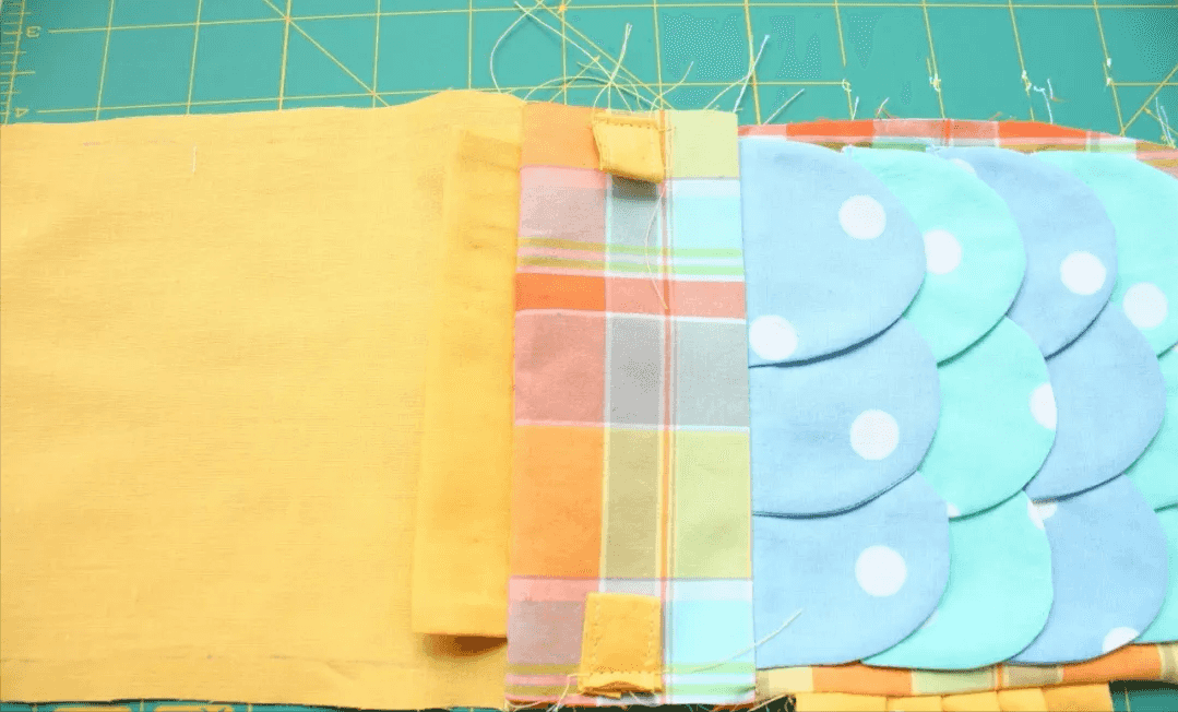 准备一块布做鱼的背鳍,对折好车缝,打褶车缝在鱼身上。