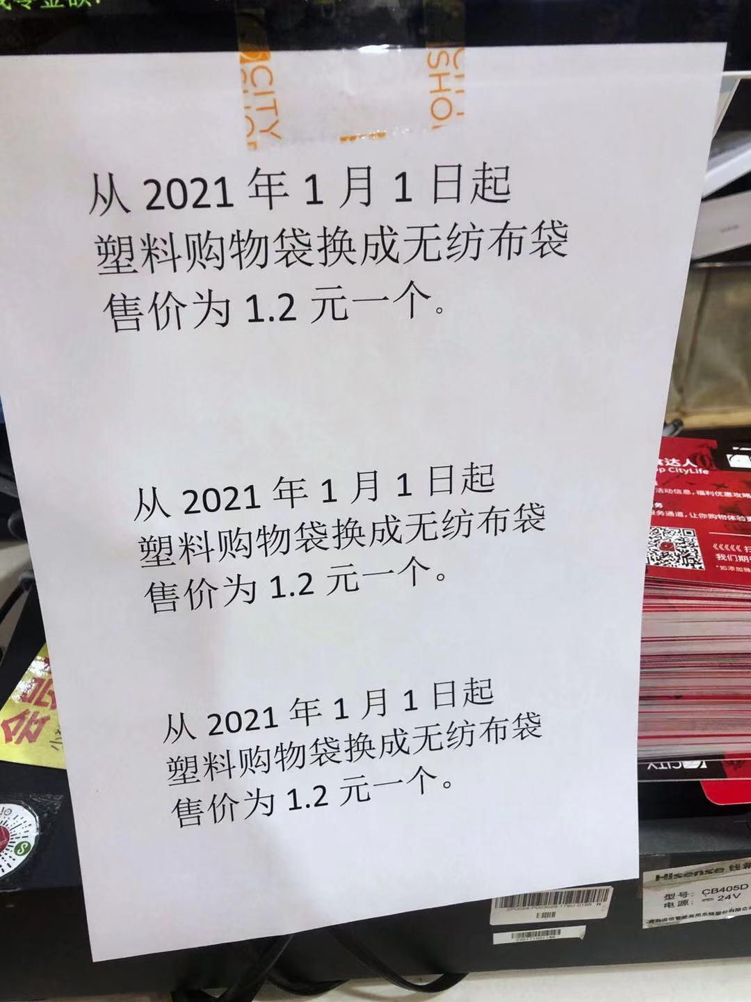 城市超市上海影城店的收银台上贴着这帆布包装定制电话/微信:15838231350样一张告示:“从2021年1月1日起,塑料购物袋换成无帆布包装定制电话/微信:15838231350纺布购物袋,售价为1.2元一个。”记者看到收银台上正放着一沓无纺布购物袋,规格相当于中等购物袋大小。