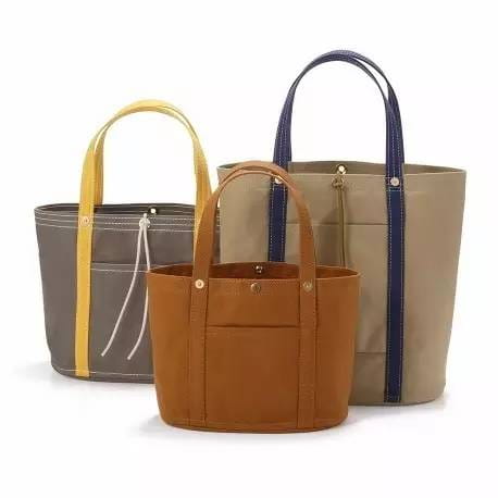 值得注意的是,一泽信三郎品牌标签有 3 个。白底绿色文字的标签,用于棉帆布袋子系列;蓝底白色字的标签,用于大多数亚麻帆布袋子;沿用百年前标签的系列,则用于各种复刻版本的产品。看到标签,就能大概分辨袋子的材质和所属系列,十分方便。