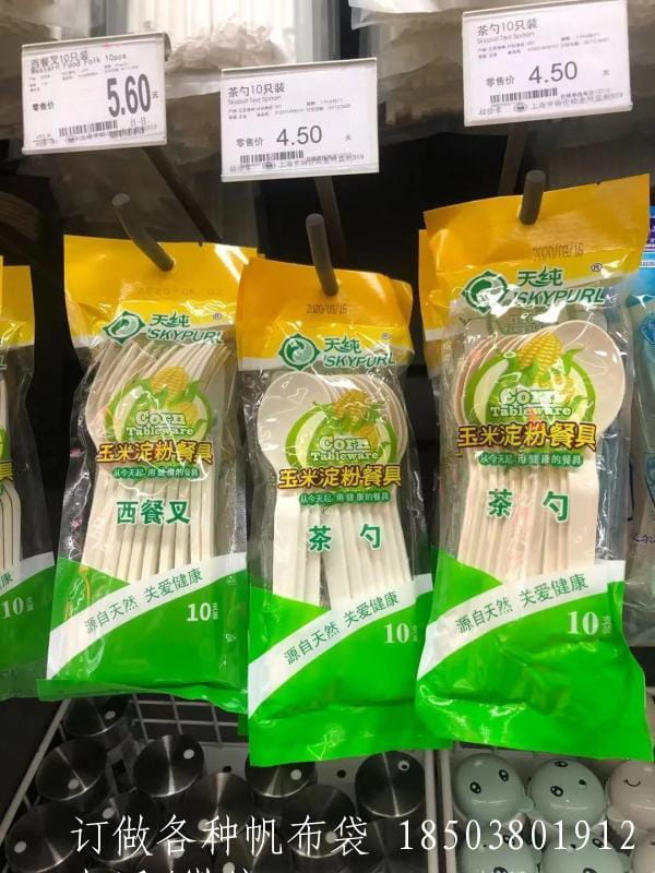 货架上的一次性餐具也被玉米淀粉餐具取代