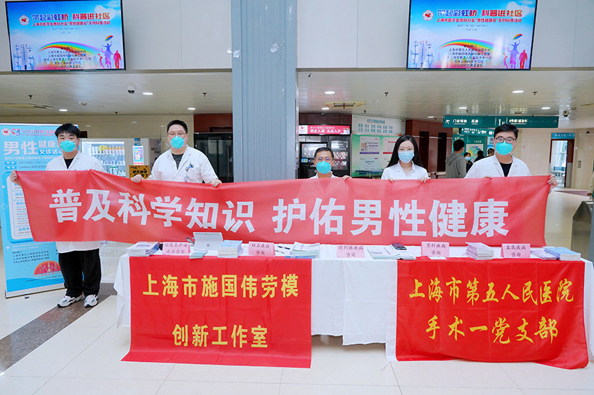 金秋十月,桂花飘香,遍野金黄,在这风景宜人的季节里,我们迎来世界男性健康日。为呼吁整个社会再多一点对男性健康的关注、呼吁每个家庭再多一点对男性健康的关爱,上海市第五人民医院泌尿外科、上海市施国伟劳模创新工作室、中共上海市第五人民医院手术一支部、阳光口袋公益项目组、上海江川社区发展基金会于10月27日上午在上海市第五人民医院门急诊大厅举办“世界男性健康日活动暨‘阳光口袋’公益科普行”男性健康义诊活动。