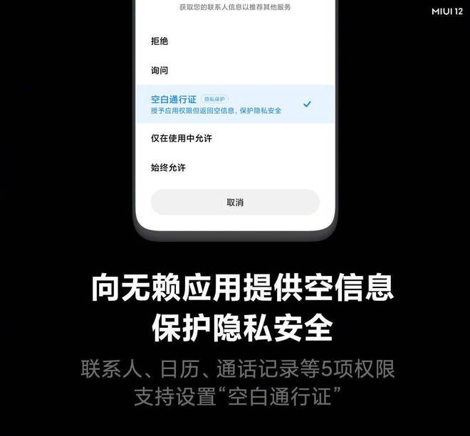 MIUI12正因为在安全方面做的十分到位,其中“空白通行证”的存在也是有着一定的影响,因为这一功能可以使大部分的应用软件都原形毕露,对于安卓用户来说,要想使用各类应用就必须授权各种权限,这样才可以使各大应用软件真正了解自己的喜好,从而通过大数据来了解到用户的喜好,但是对于使用过MIUI12空白通行证的用户来说,完全就可以避免这一问题,只要开启此项功能就可以避免自己的隐私被上传到各大数据平台,在隐私保护上还是做的很到位,足以证明MIUI12系统的强大性。