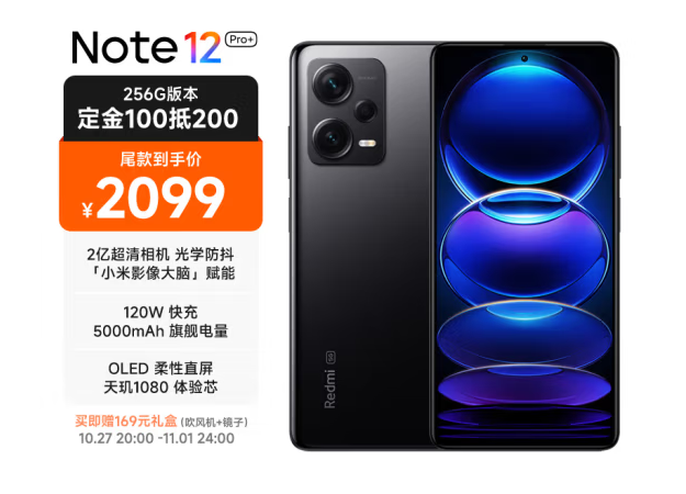Redmi Note12 Pro+是本次双11小米的预售销冠机型,Redmi Note12 Pro+搭载了天玑1080处理器,配备OLED柔性直屏,后置摄像头模组搭载2亿像素主摄,采用三星HPX传感器(1/1.4 英寸大底,2.24μm 16in1大像素),主摄配备大号OIS 光学防抖+旗舰7P镀膜镜片。Redmi Note12 Pro+ 8GB+256GB版到手价2099元。