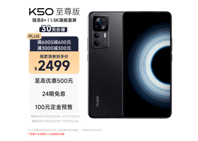 Redmi K50 至尊版本次小米双11活动主打的性价比机型,可以说是旗舰的配置,中端机型的售价。配置方面Redmi K50 至尊版搭载了骁龙8+旗舰处理器,配备1亿像素光学防抖主摄,续航配置为120W+5000mAh,拥有1.5K旗舰直屏。Redmi K50 至尊版 8GB+128GB预售到手价2499元,相比首发价直降500元!Redmi K50 至尊版12GB+256GB预售到手价2899元,支持24期免息。