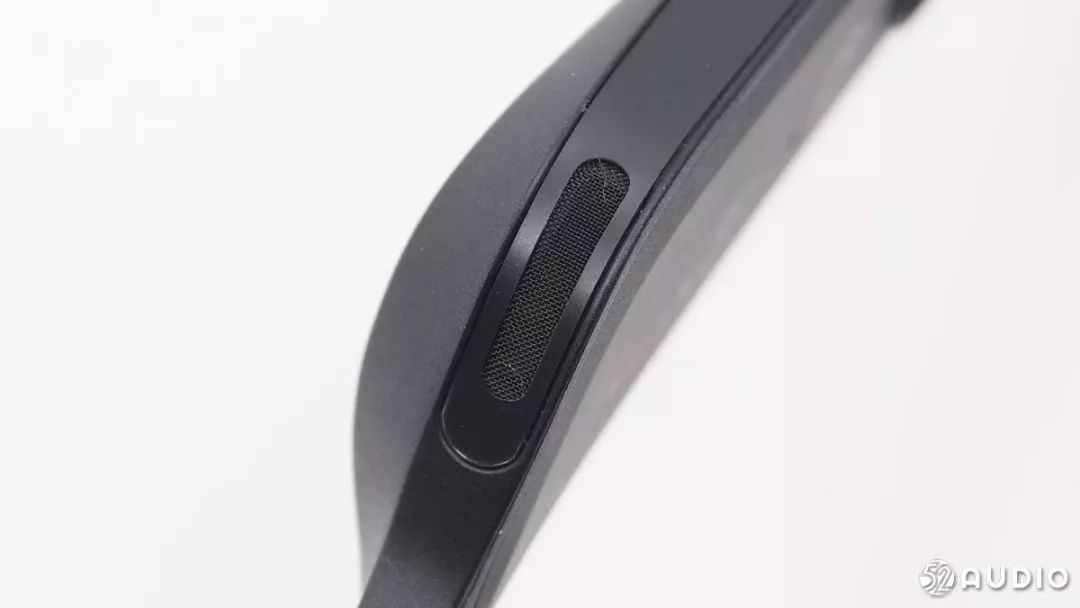 眼镜的微型扬声器开口,表面有高密度网罩覆盖,防尘透音。