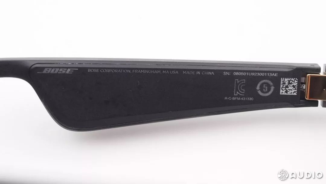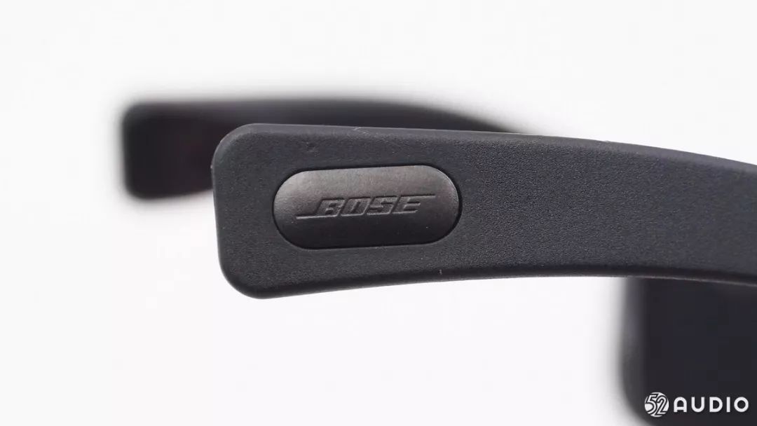 眼镜侧边支架尾部外侧的Bose凸体凹印logo。