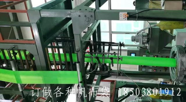 ▲生产车间内,机器正徐徐运转,一个个可降解塑料袋随即诞生。