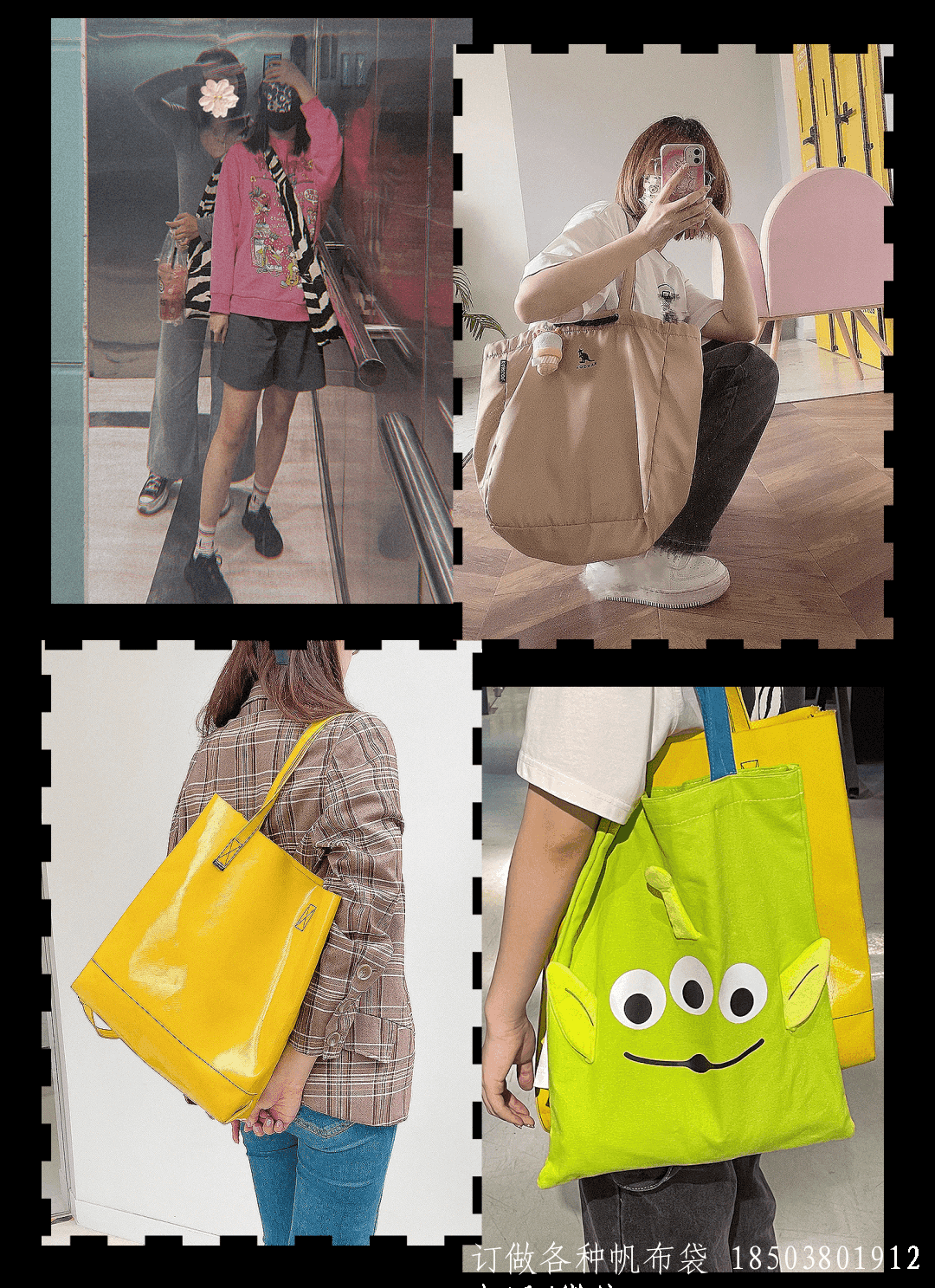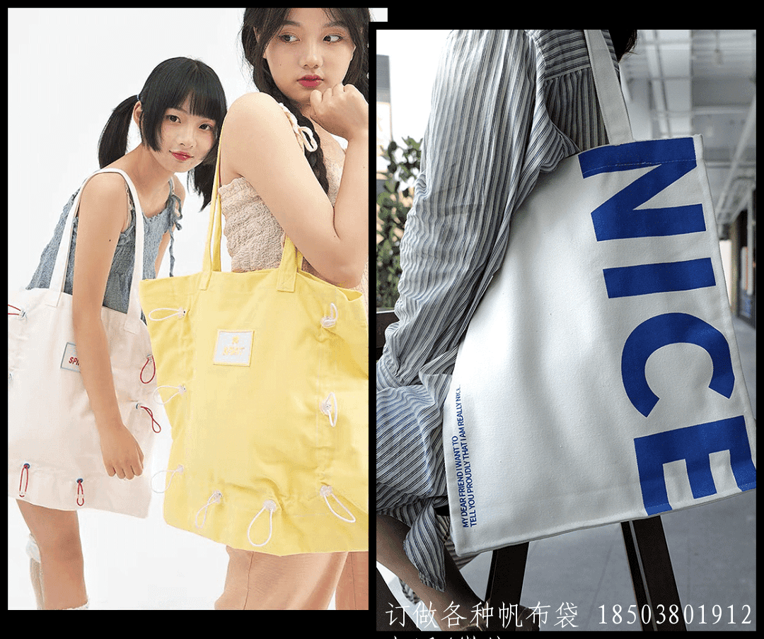 比如不同色系拼接包带、双背带、抽绳等不起眼的设计,让环保袋没那么无聊,也不怕烂大街