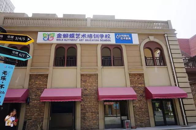 金蝴蝶艺术培训学校在青岛有很多家,优尼小镇的金蝴蝶是金蝴蝶品牌全国首家配备小剧场和录音棚的店铺,整整3层,有专业录音室,舞蹈训练室,还有儿童小剧场,为儿童提供专业的艺术培训。