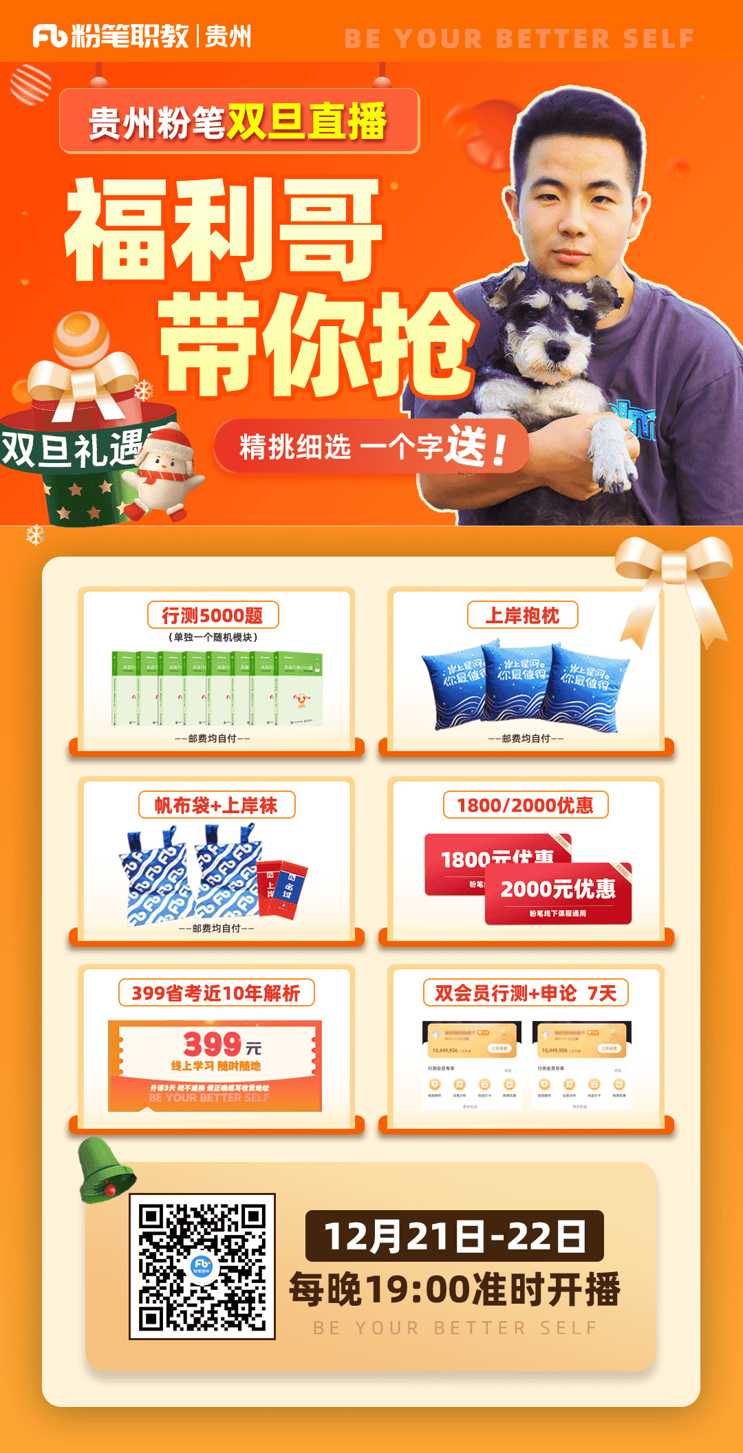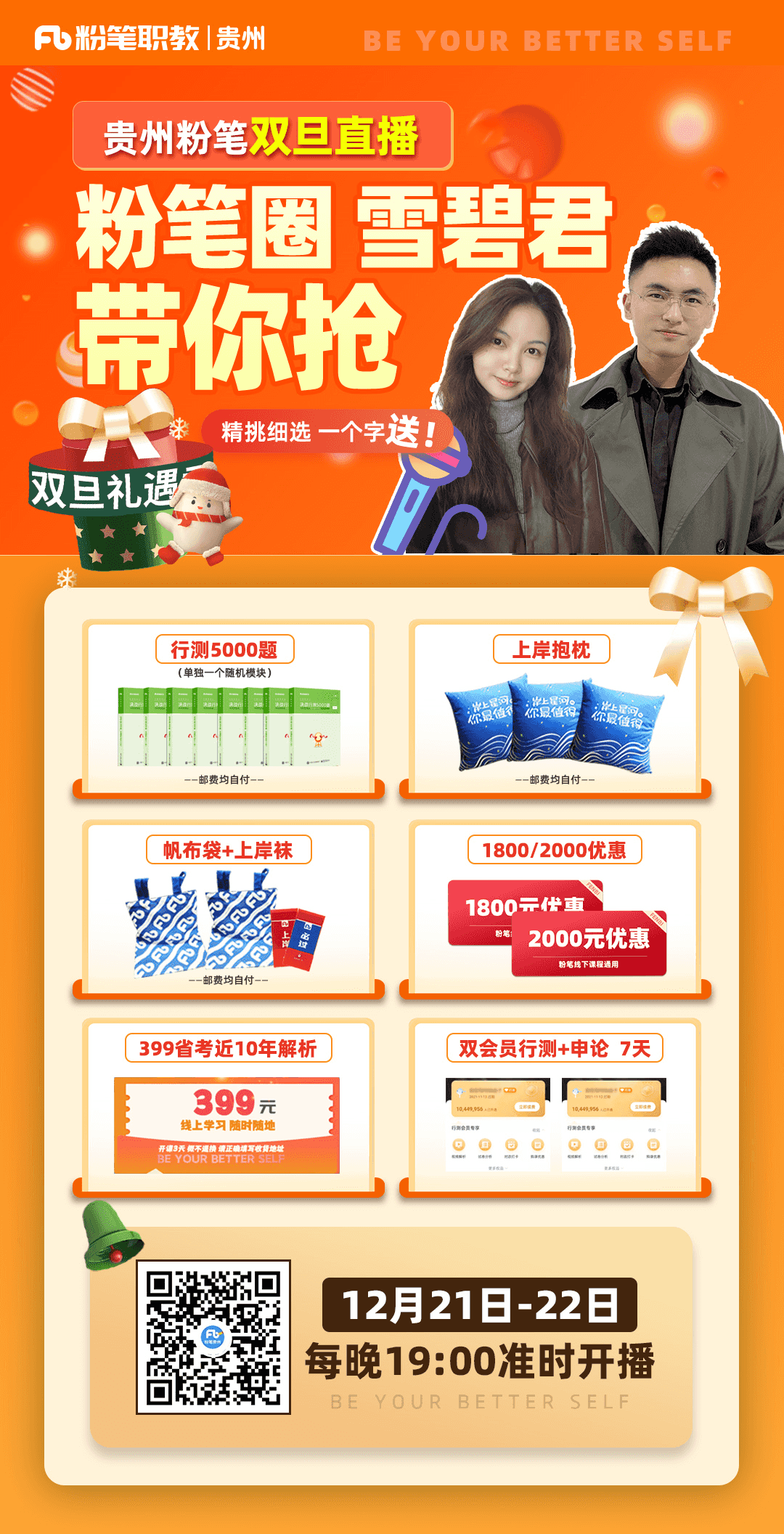 帆布手提袋电话/微信:15838231350距离跨年已经不到两周 2021年也即将收尾 赶在年末元旦,加上圣诞节 中西合并的喜庆节日期间 小粉笔们再来放一波福利 参与活动瓜分万元现金奖金池 来线下还可抽惠普打印机 50元不等现金红包、小米加湿器.. 帆布袋、抱枕等粉笔定制周边 12月21日-12月22日 【抽奖奖品】 行测5000题(随机模块)、粉笔周边礼包(帆布袋*1、上岸袜*1)、岸上星河抱枕、399元省考近10年解析课、粉笔7天双会员、1800/2000元线下课优惠券... 等泥萌来抽!! 【活动时间】 12月23日-12月31日 【红包墙可抽奖品】 岸上星河抱枕、最高可抽50元奖金、粉笔周边礼包(星河鼠标垫、粉笔水性笔、帆布袋) 【砸金蛋可能会砸到】 注意:已报线下课的学员才可参与砸金蛋活动,百分百中奖 500元惠普打印机、299元小米加湿器、行测5000题、100元京东卡、小米台灯、1800/2000元线下课优惠券... 【参与活动地址】 包含省内九地市,下方点击图片即可查找 【可使用课程】 以下2022省考线下课均可获得抵扣优惠(具体兑换方法可咨询身边小粉笔哦~) 以上就是这次双旦活动详情啦 这次活动是2021年末 最后一次“抽奖大促”活动 如果今年的你们还没有感受过 突然间的“好运”带来的喜悦? 赶在年末带上小伙伴 一起体验一次“抽中打印机” ”抽中现金“”抽中粉笔周边“的快乐 全程包住宿,封闭式学习 48天笔试+8天面试(包住) 了解课程更多详情可咨询身边小粉笔 2022贵州省考全程营 笔试+面试(8天包住)共67天 了解课程更多详情扫码添加小粉笔 -END-