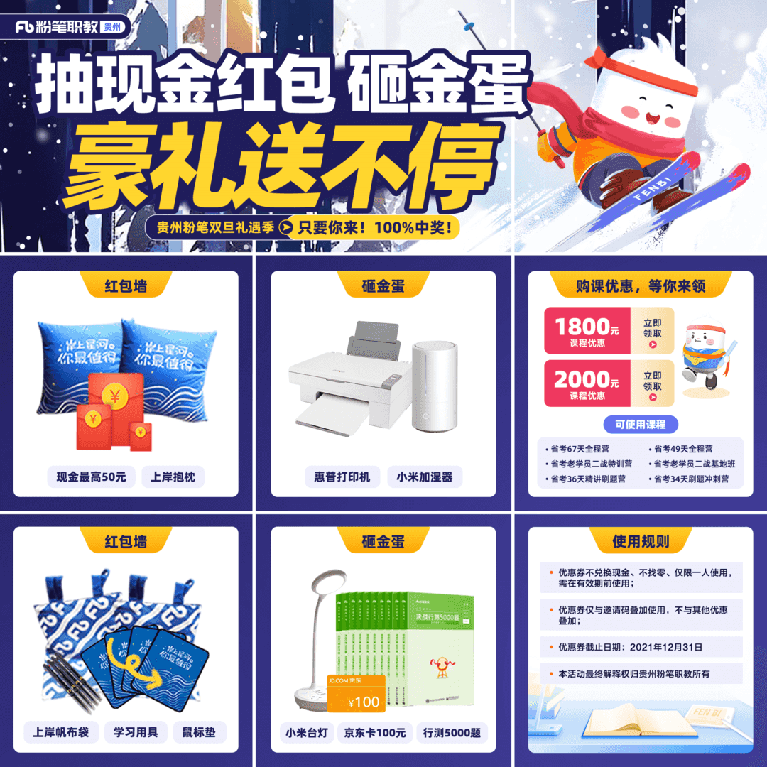 粉笔双旦爆“料”!惠普打印机、小米加湿器、万元现金奖金池、粉笔周边...线下_线下等你抽!!