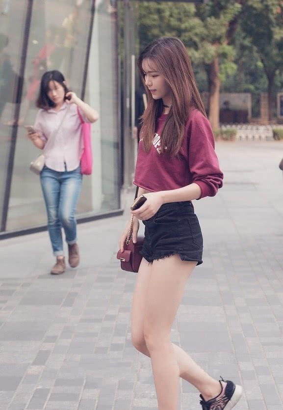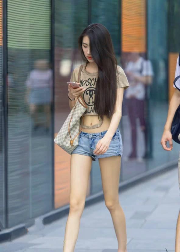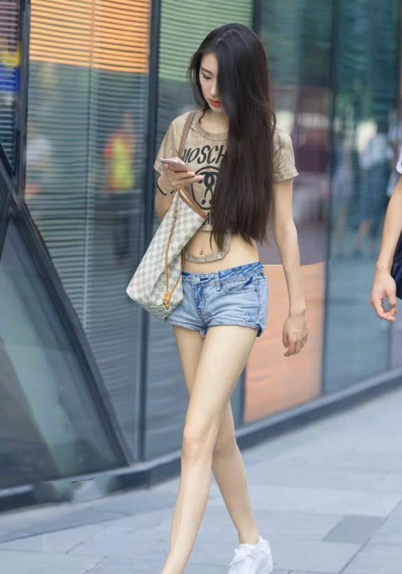 而这个美女在下半身是穿了一条蓝色的牛仔裤,并且还是很短的热裤,也就会显得更加性感一些,毕竟也是需要腿细的女生才会有这种自信穿上那么短的热裤吧!而美女的这双小白鞋也是加分不少,看上去更加童真了呢!