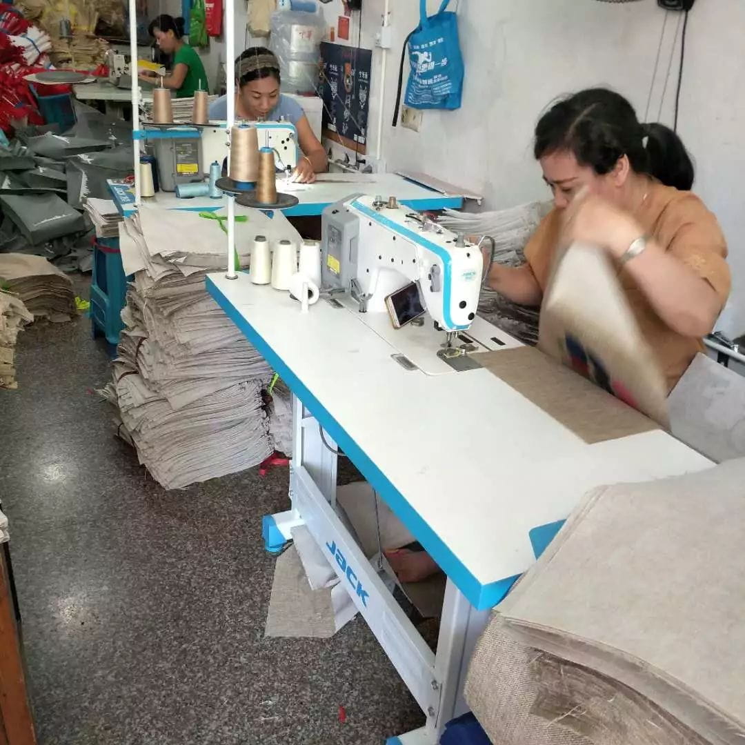 将一片一片的帆布进行车缝,这需要我们的工人的耐心与细心,车缝走线越细密越工整,整个帆布袋就越牢固。