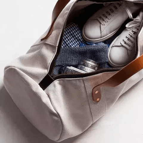 Waxed Canvas Carryall,也被称为Garrison Bag,是其品牌中一种重磅帆布包款,由20oz打蜡棉帆布制成,植鞣革手柄采用厚规尼龙线缝制,并附有实心黄铜铆钉,多个口袋的设计便于日常出行物件的携带。