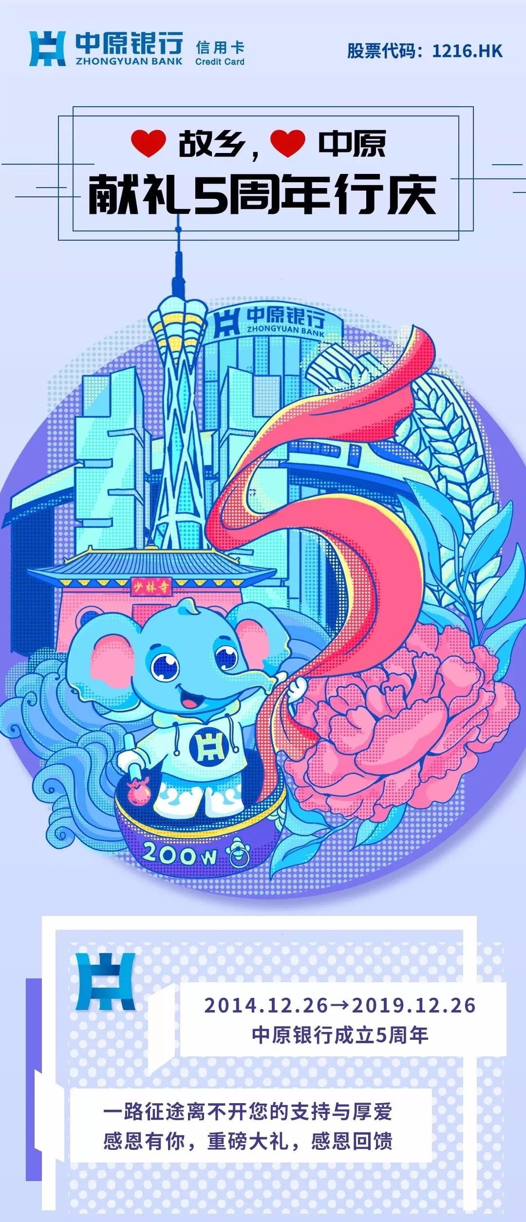 <1> 超级福利一 活动时间:2019年12月28日-2019年12月29日 每天上午10:00点开抢 手中持有中原银行卡的小主儿,快拿起您的卡,来新玛特买买买吧。 参与方式:活动期间单卡可享受1次优惠,单日限前300名,需客户刷卡消费,名额有限先到先得。(11月23、24日已享受过新玛特满百减半活动的信用卡客户不可参加了哦) 参与地点:漯河大商新玛特,超市、百货 <2> 超级福利二 <3> 超级福利三 线下打卡,人人抽大奖 12月27-28为献礼5周年行庆 中原银行信用卡 在漯河新玛特举办感恩回馈活动 伴手礼统统送给您!! 获取攻略:文末留言参与回复#您2020年最想让中原银行信用卡增加什么权益?#选取十名优质留言,送中原银行信用卡吉祥物原宝一个。 ▼ 已上福利限漯河在线粉丝所有 新朋友请识别二维码回复1加入 什么?您还没有超省钱的信用卡?? 快拿起打开,扫下方二维码申请吧!! 编辑 | 佩奇 漯河在线合作电话:(同) 注:本文系广告推广 吐槽 | 爆料 | | 策划 | 推广