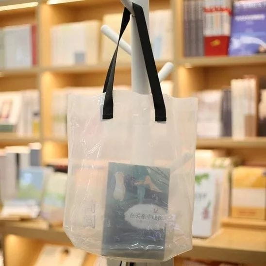 深圳小而美的简阅书吧的这款袋子材质是胶袋,是简阅书吧在“老实胶袋”定制的一款非常大气的袋子,定价88元。“老实胶袋”跟随新生代年轻人的成长应运而生,与简阅书吧的定位十分相符。从简阅书吧负责人那了解到,胶袋也称“果冻袋”,在书店重大活动时作为礼品赠送,也在书栈里作为文创品来售卖,很受读者欢迎。