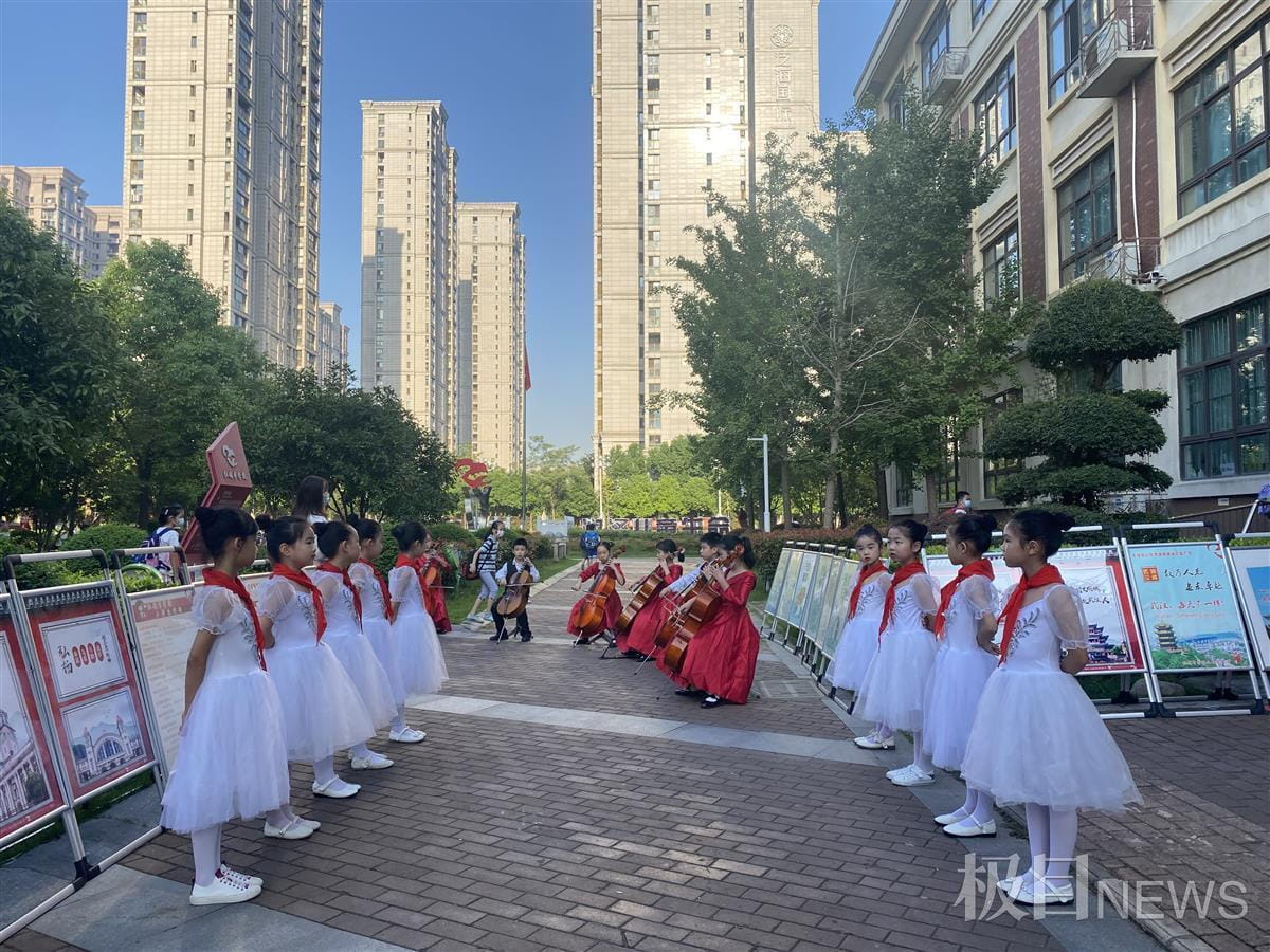 早上7:30,学校乐团和舞蹈队的20名学生身着礼服,在教学楼前依次排开,等候老师到场。“敬礼!”当号令声响起,乐团学生齐声演奏起大提琴曲目《法国民歌》《轻舟荡漾》《校园快板》,舞蹈队学生向老师行少先队队礼,欢迎老师进入校园。