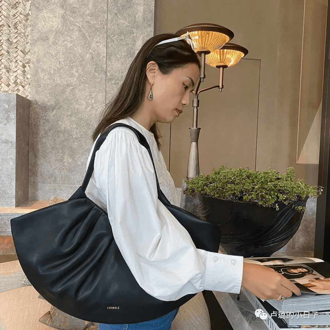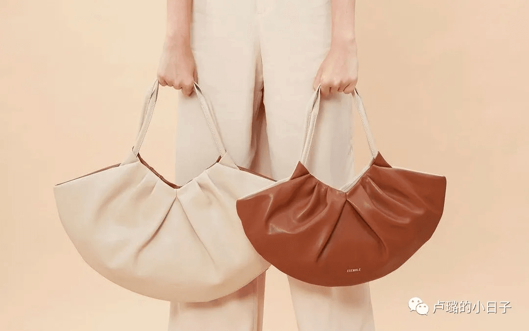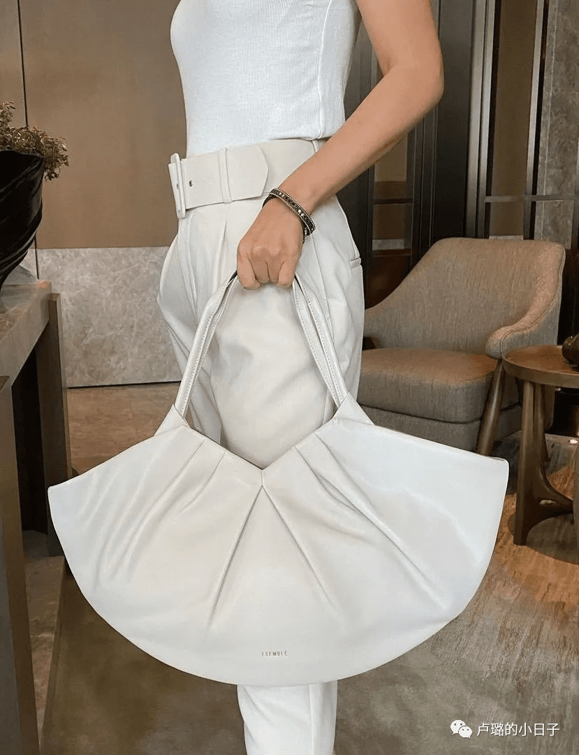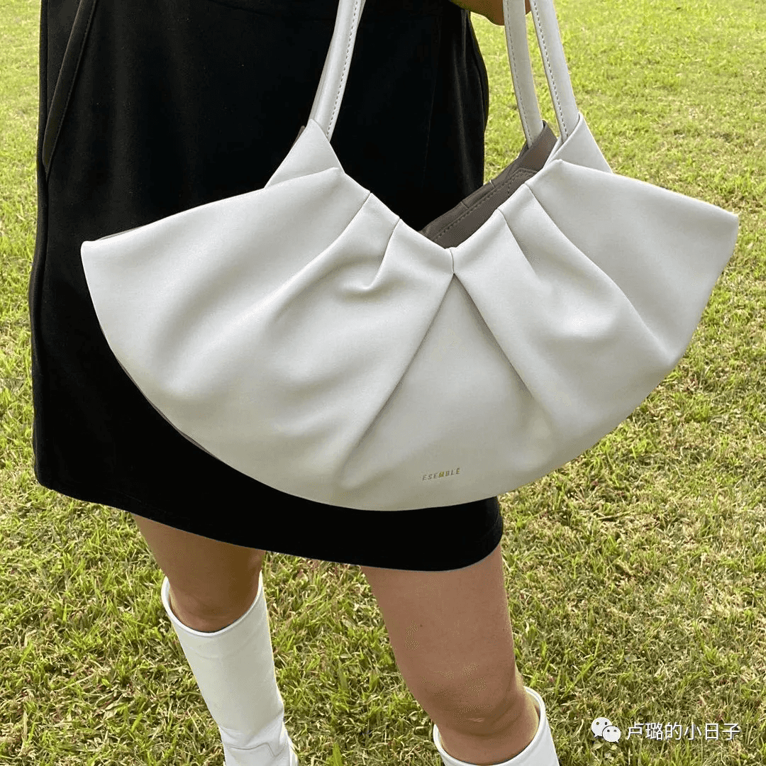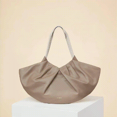 前面说到托特包大多是方正的包身,但ESEMBLĒ这次首次推出托特包——Lila Fan Tote,这款tote在包型是设计上可以说是别出心裁。