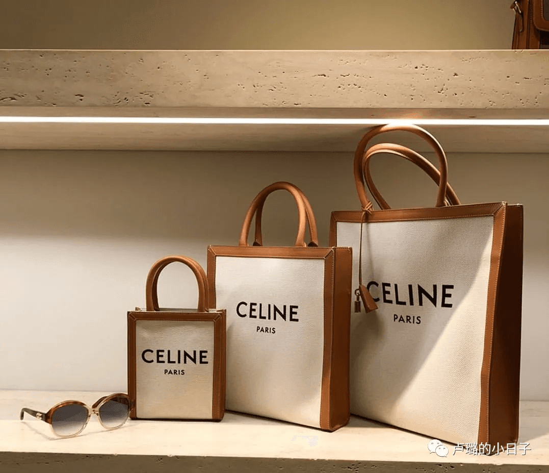 米白色帆布款则是以简约为主,压印“CELINE PARIS“的logo,容量很大,一年四季百搭,也是一上市就成为热销款。