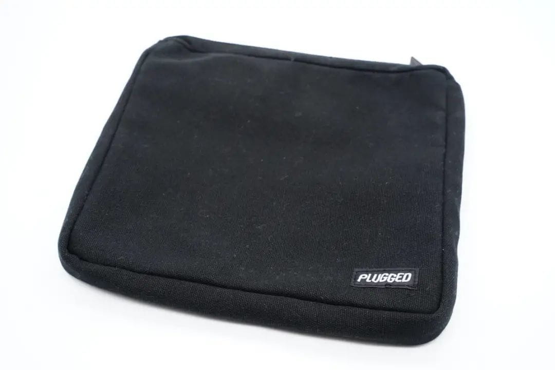 这个收纳包十分的简约大方,帆布材质,带拉链收纳。包包也很厚实,拉链十分顺滑一看做工就非常不错。右下角有PLUGGED的标识LOGO。