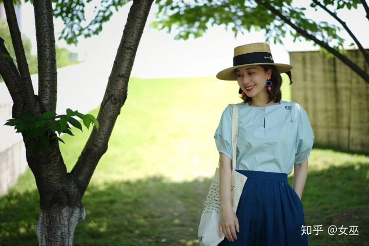 还是那棵我常常合影的树下,我穿上剪裁利落的雀蓝色半身裙,搭配浅一个色系的方领上衣,多一份文雅讲究,更有年轻光泽。这时候其他的手袋都比不上背一只原色的字母帆布包来的恰当,保留帆布最原始颜色,简单的几串黑色英文字母,有一种朴实的自然感。