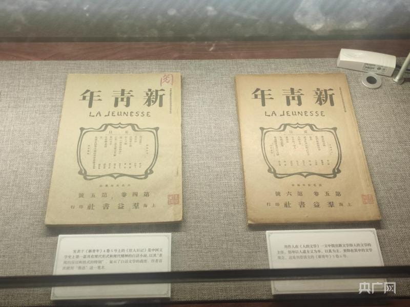 馆内展出的《新青年》杂志(央广网记者 高欣然 摄)