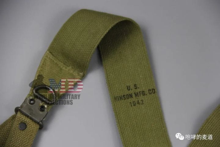 下面这条M36背带是1942年生产的,但使用的是一战剩余卡其色帆布与1942年生产的OD-3色帆布共同拼接而成。帆布装备的颜色混搭现象在战时从未间断。