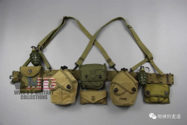陆军部队和陆战队的装具生产规范大致一样,陆战队的换装时间更长,有的士兵打完整个二战还背着1942年生产的装具也不违和。