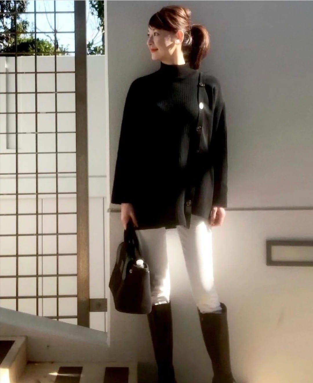 基础色分为多类,但还是黑色最能够让步入中年的女士可以感知到色彩赋予她们的优势,对她们的身形也有着出众的修饰的作用。
