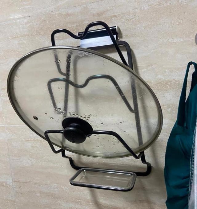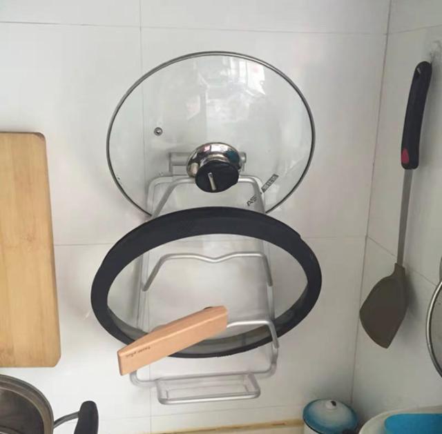 直到我用上了锅盖架,这两个问题才彻底被解决。将锅盖架,布置在灶台旁边的墙壁上,想要放锅盖可随手放,担心锅盖上滴落水,掉到台面上?