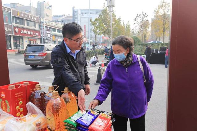 这是由山东省粮食和物资储备局和大众报业集团主办、大众日报融媒传播有限公司承办的“齐鲁粮油”走进大众嘉园活动现场,省内代表山东特色的众多粮油企业前来售卖,引起社区群众的追捧。