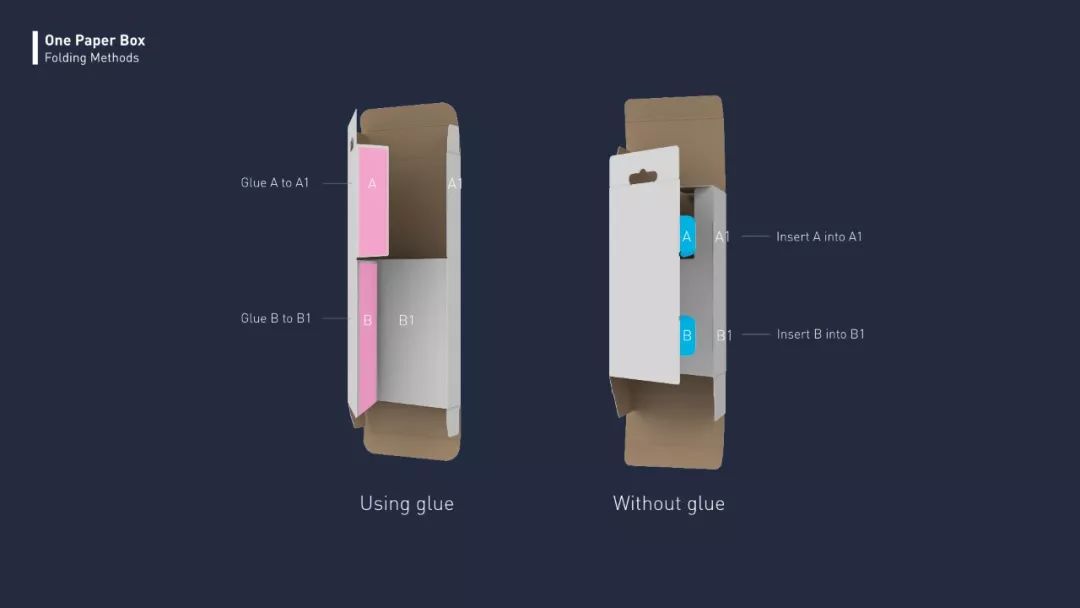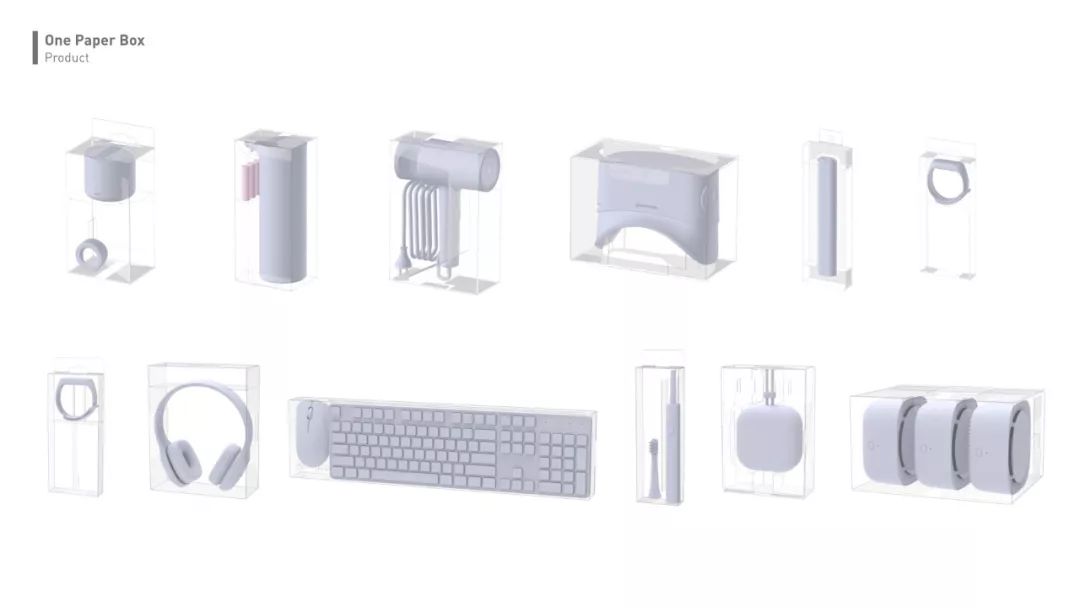 One Paper Box,“一纸盒”,是小米设计的环保包装方法。简单说,一个包装盒只需要使用一张卡纸或瓦楞纸板折叠而成,里面不需要多余的辅料来支撑,甚至不需要使用胶水,组装过程更加节省劳力。