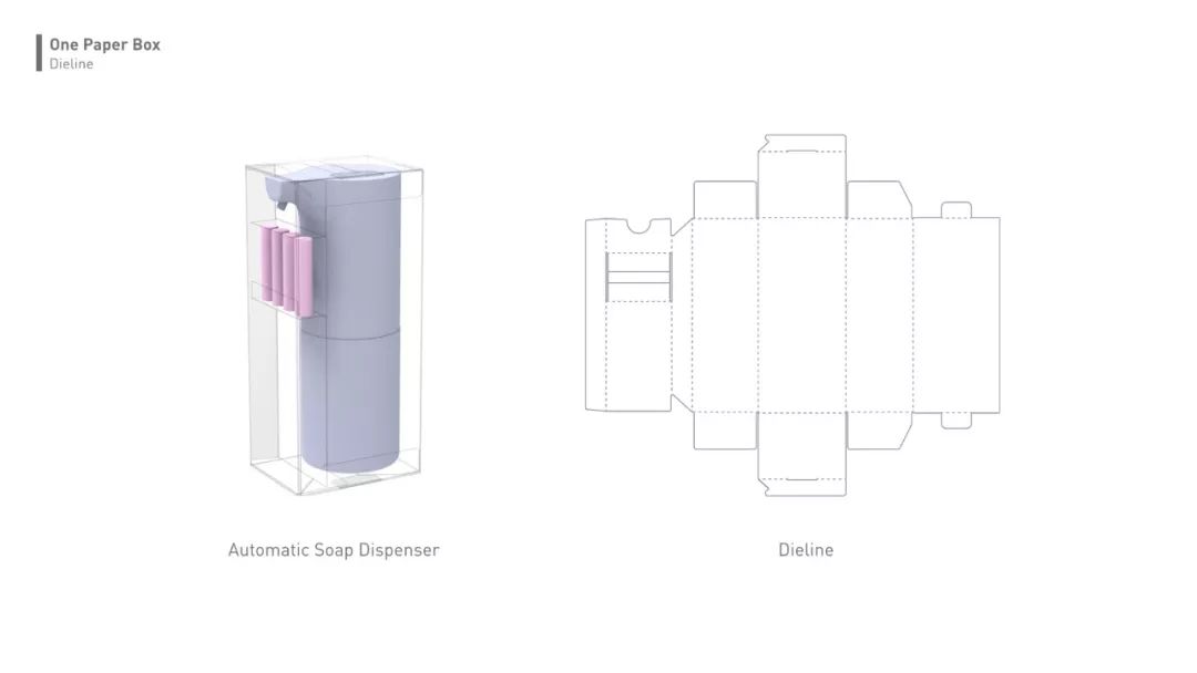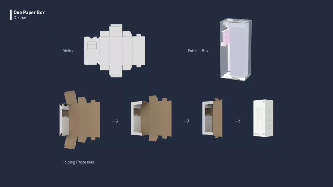 于是就有了One Paper Box项目,将材料使用量降到最低极限,仅用一张纸,来试验在极端的使用量下能不能设计出满足电子产品测试要求的包装结构方案。