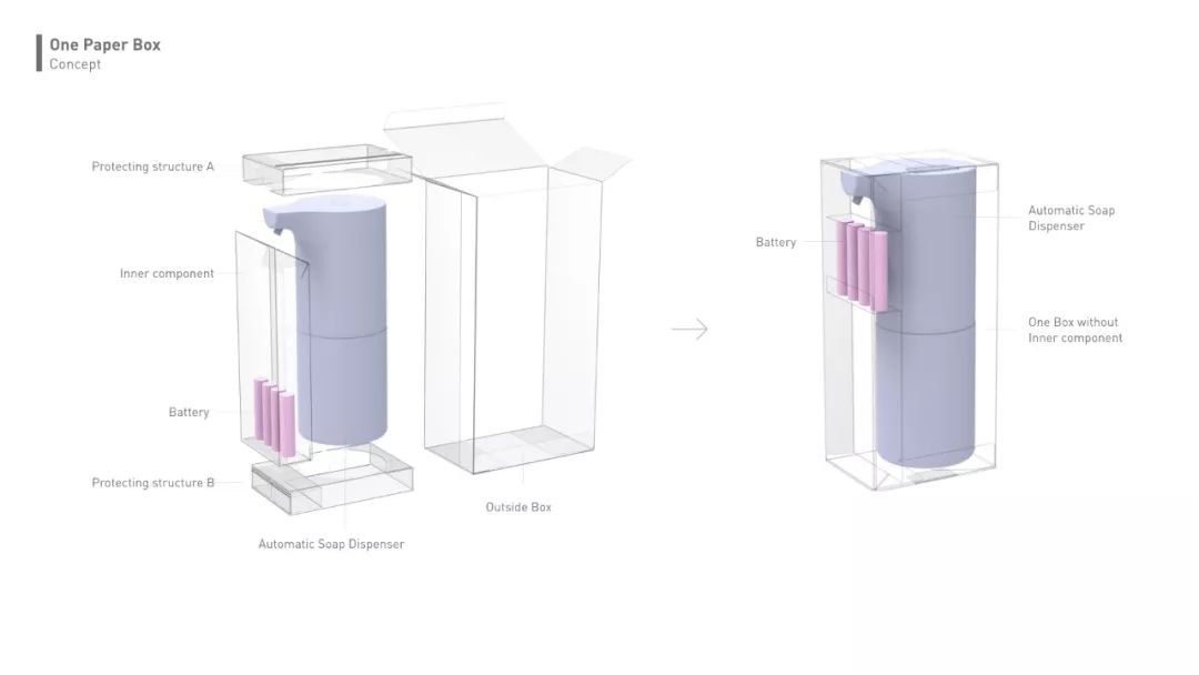 根据计算,“一纸盒”的设计,最高能降低原传统包装成本的40%,还能避免过度包装给地球带来的浪费。这样的包装方法最近也获得了行业和国际上的认可,并斩获日本优良设计奖 Best 100和德国iF设计奖。