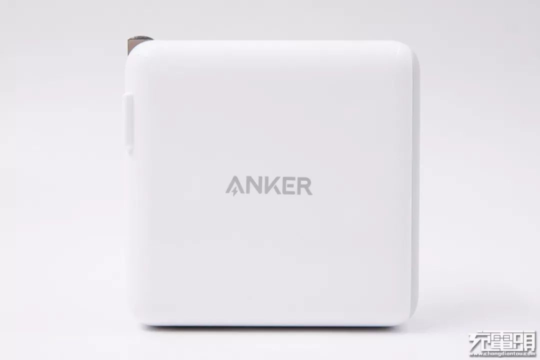 ANKER出品的产品大多数造型相似,比较圆润,本次上手的ANKER 60W PD GaN 双口充电器也不例外,周身没有棱角,边缘全部圆角处理。充电器主体使用阻燃塑料材质、整体呈白色,中央印制“ANKER”字母LOGO。充电器表面钢琴烤漆工艺,触感顺滑,然而很容易成为指纹收集器。