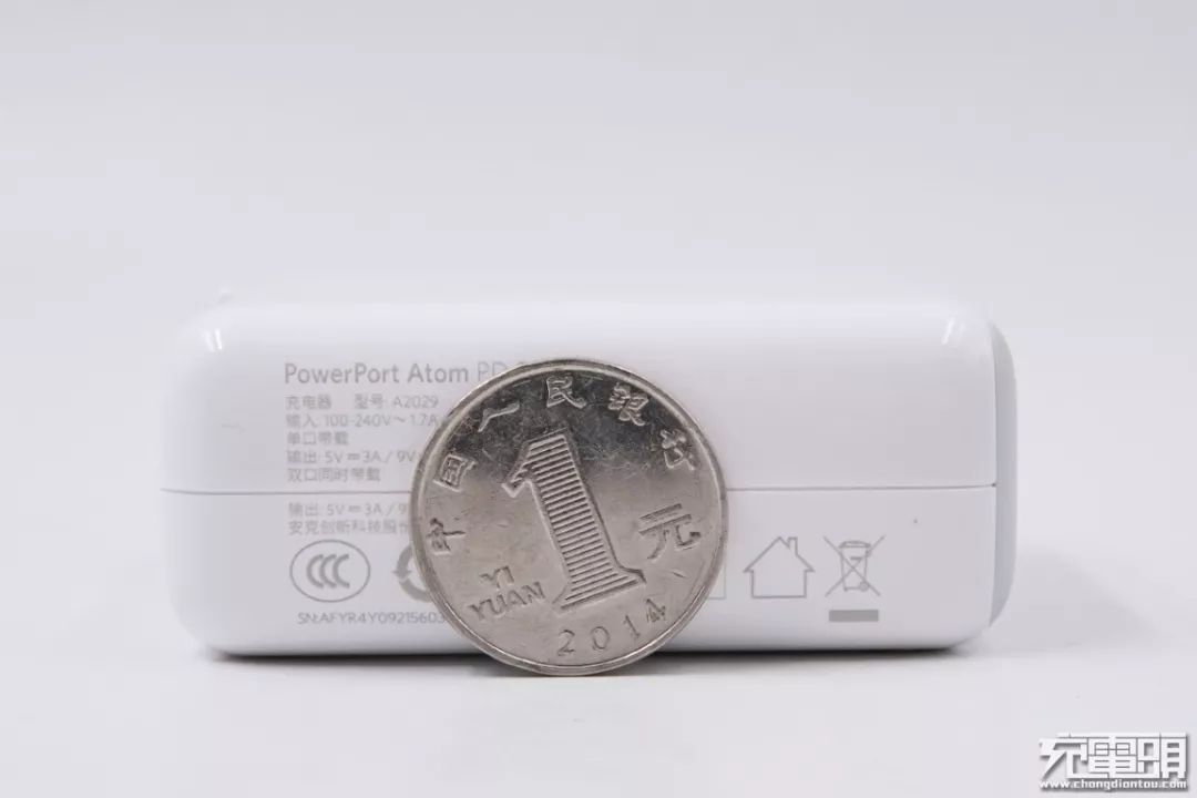 包装盒上的详细参数:名称:ANKER PowerPort Atom PD 2 充电器产品型号:A2029重量:178g产品尺寸:68*69*28mm产地:中国颜色:白色保修时间:18个月输入:100-240V~ 1.7A 50-60Hz单口输出:5V/3A、9V/3A、15V/3A、20V/3A双口输出:5V/3A、9V/3A、15V/2A、20V/1.5A