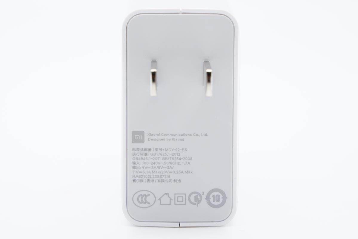 作为小米手机标配充电器,单独拿来开卖其包装盒也是简单风格设计,正面印有MI logo、充电器套装图以及名称。