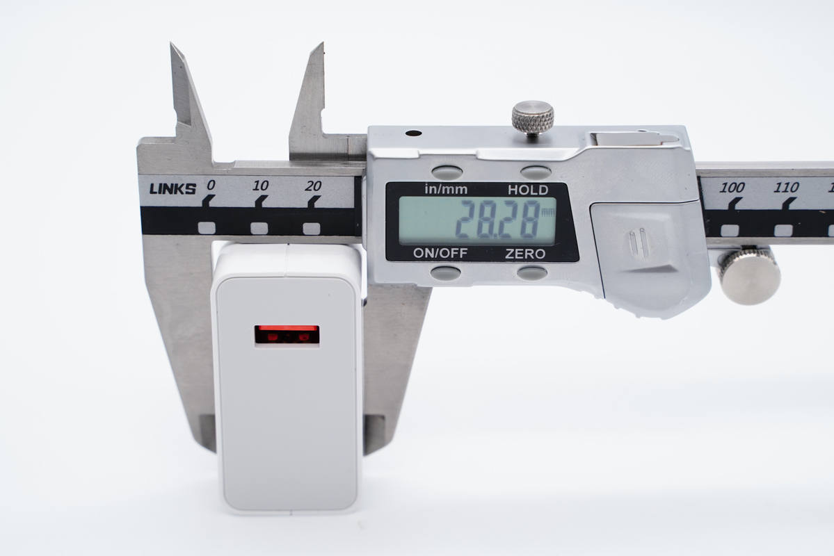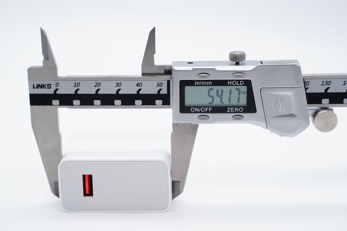 使用游标卡尺实测充电器机身长度为58.65mm。