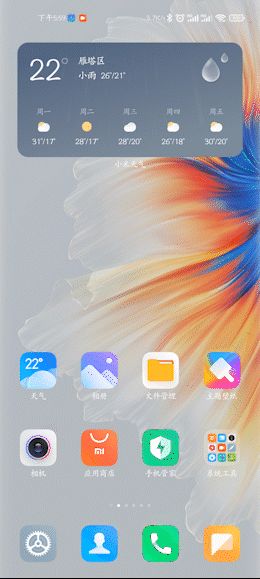 在以上 6 个应用安装完成后,在桌面空白位置长按或者在桌面任意位置双指捏合,即可唤出全新的 MIUI 小部件!