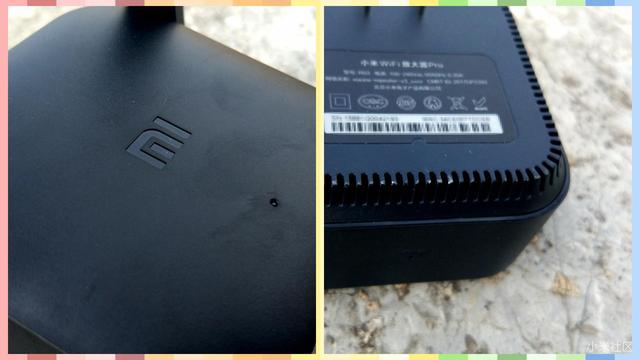放大器真面有标志性的小米Logo,整体用料感觉和初代硬盘版路由很像,比较容易沾染指纹舞姿。底部留有一圈散热孔,保证了设备能长时间正常运转。
