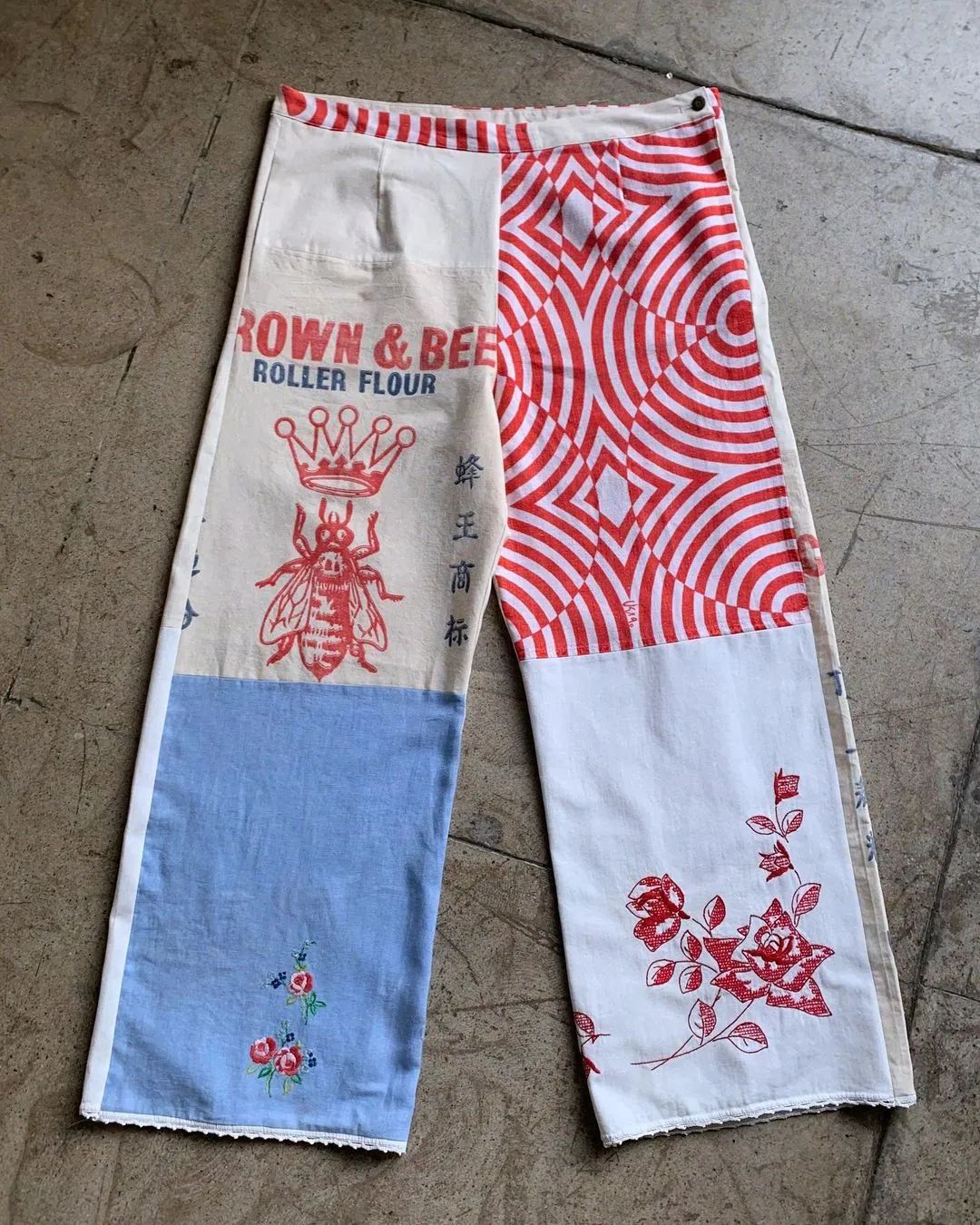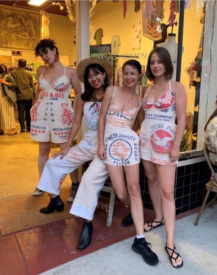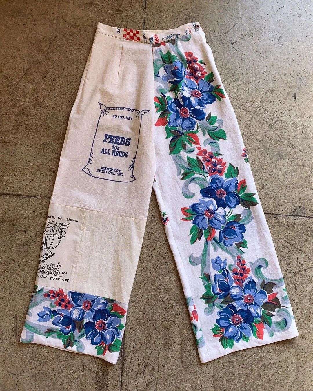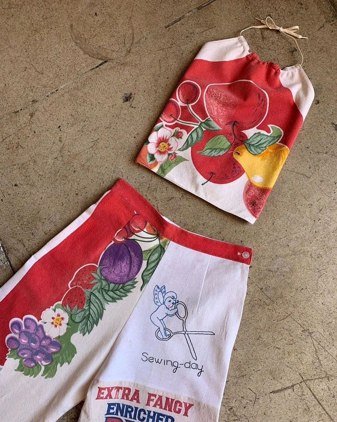 店主Crystal介绍说,“这是源自经济大萧条时期的传统,当时由于面料短缺,女性们用面粉袋制作服装。这是充分利用现有资源的象征,同时这些服装非常别致。”