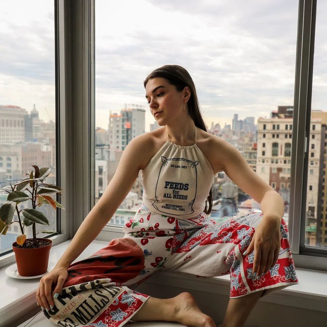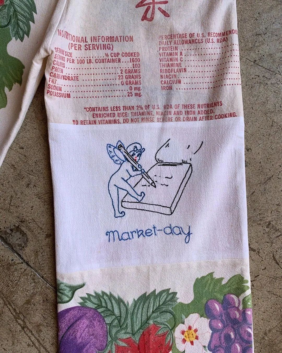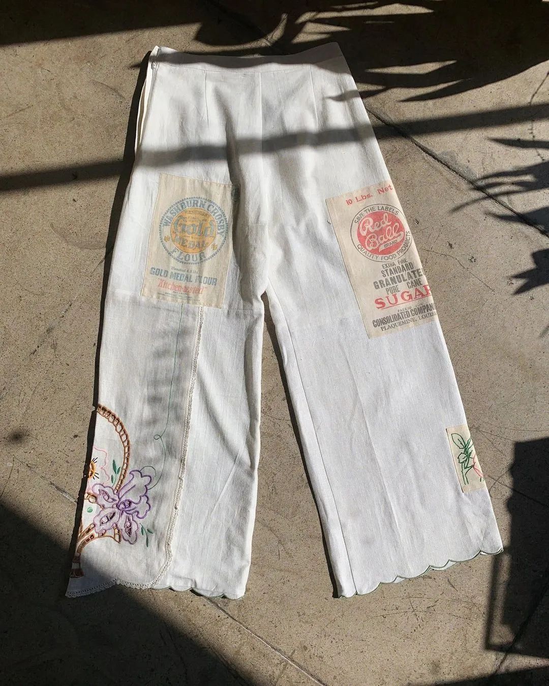 店主Crystal介绍说,“这是源自经济大萧条时期的传统,当时由于面料短缺,女性们用面粉袋制作服装。这是充分利用现有资源的象征,同时这些服装非常别致。”