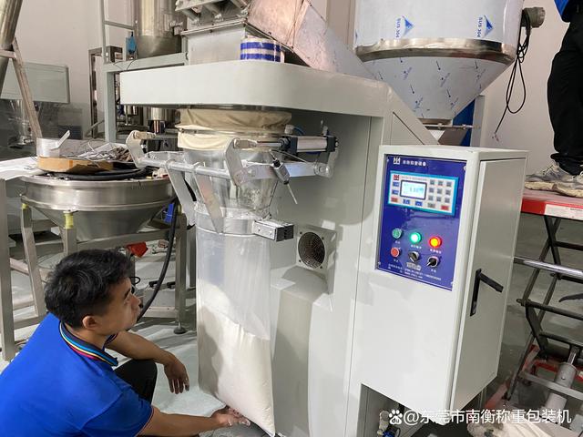 大袋5-60公斤面粉包装机 南衡这款大型的粉体包装机设备适用于5公斤-60公斤的面粉称重包装,自动称好自己想要的重量规格,人工套下袋子就可以了,设备自动计量,然后根据需求选择封口设备,有线缝合热封口,如果有内袋,可以选择扎带或者是内袋单独热封口。