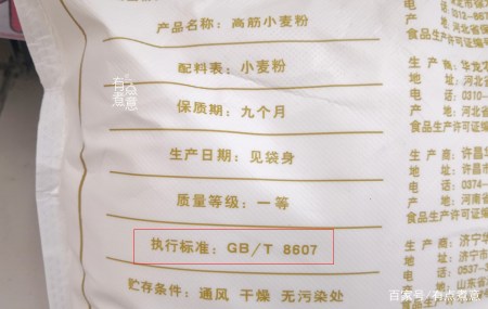 买高筋面粉的时候,要看包装背面的执行标准是GB/T8607这4个数字的,“GB”代表“国标”,企业必须严格按照这样的标准进行生产,没有这项执行标准的尽量不要购买。